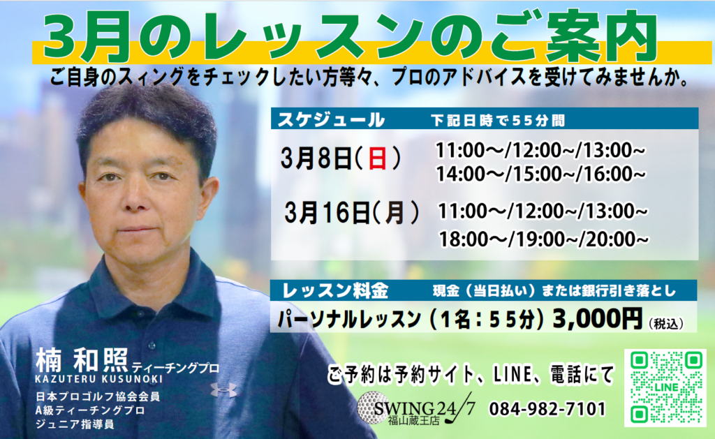 スィングのチェックや、迷いのある方等々、プロのアドバイスを受けてみませんか・・。